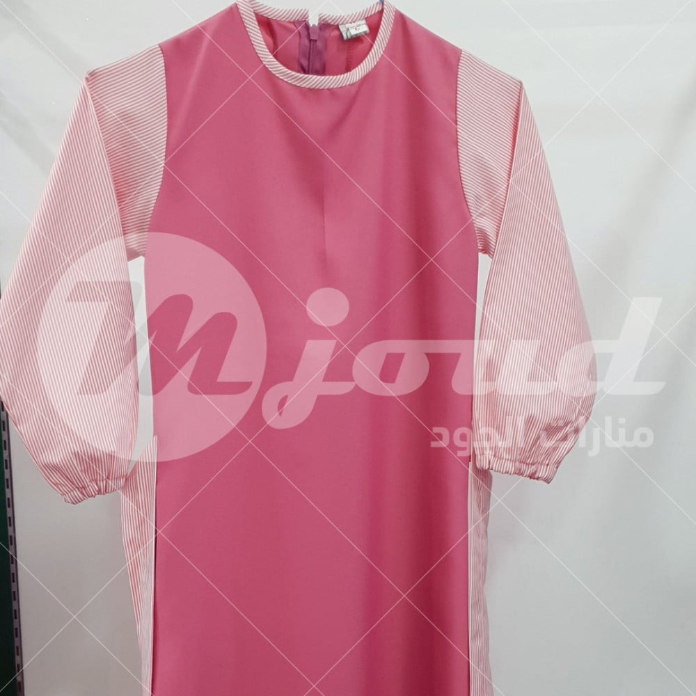 مريول وردي موديل كويتي بياقة دائرية وسحاب خلفي .