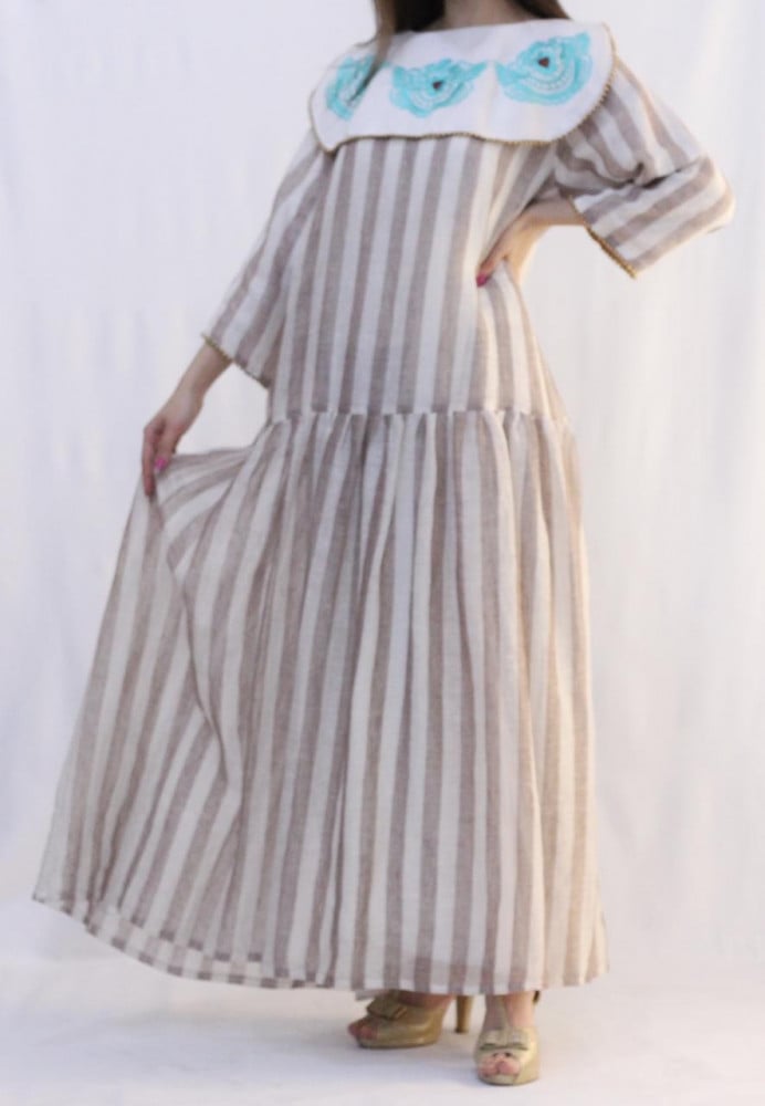 جلابية مميزة بياقة بيج مطرزة