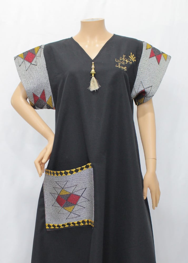 جلابية بتطريز ذهبي و دانتيل أبيض