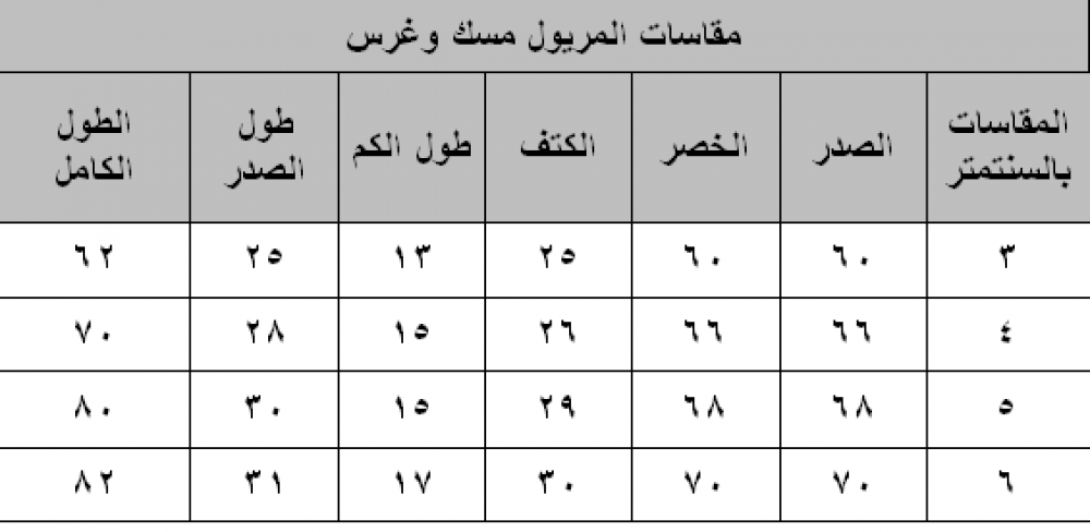 يوجد جدول مقاسات للمنتج