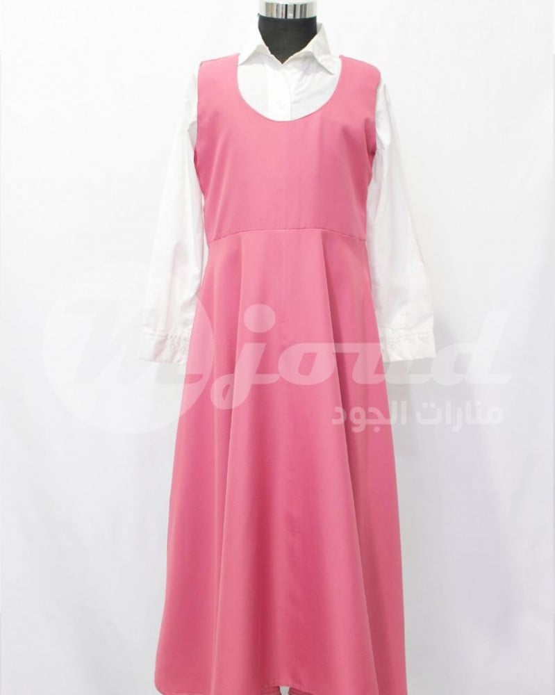 • مريول وردي سادة بقصة صدر دائرية