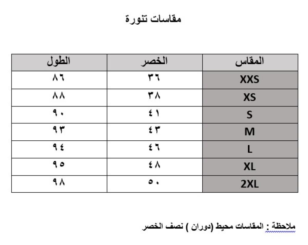 يوجد جدول مقاسات المنتج